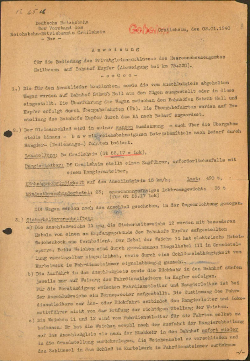 01.02.1940: Anschlußbahnvereinbarung zw. Reichsbahn