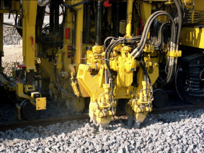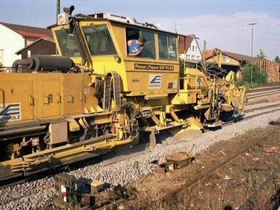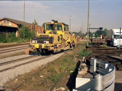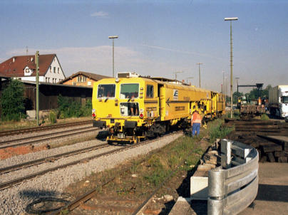 Eine Stopfmaschine auf Gleis 3. Noch ist das Stumpfgleis