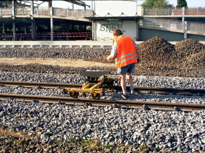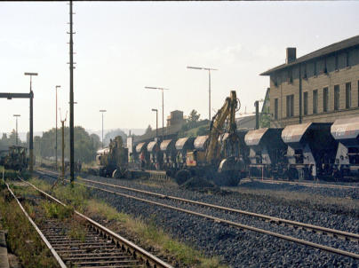 Das „neue“ Gleis 3 wird neu eingeschottert, hier ist der