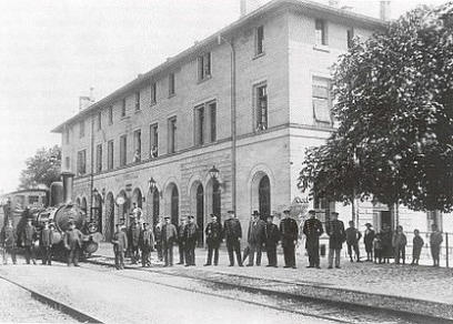 Jahren. Man sieht noch das alte Bahnhotel. Flächen, die