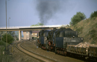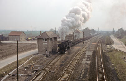 Am 13.04.1976 überholt 221 144-9 einen dampflok-