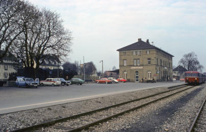 Schienenbus der Baureihe 795 am 13.04.1976 vor dem