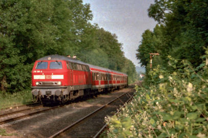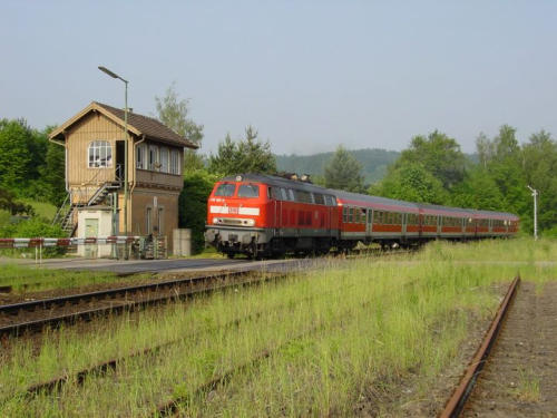 Anfang der 2000er-Jahre waren im Bahnhof Weinsberg nurnoch die durchgehenden Hauptgleise in Gebrauch. Dierestlichen Anlagen waren zwar noch vorhanden, jedoch ohneNutzung, als am 31.05.2003 die Ulmer 218 160-0 mit einem Regionalzug den Bahnhof Weinsberg erreichte.Die Maschine wurde im Juli 2011 ausgemustert undin Magdeburg zerlegt.Foto: Steffen Schott
