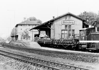 Vor dem Güterschuppen steht ein Arbeitszug mit der Kleinlok 333 235-0.Foto: O. Schmolinske, Esslingen