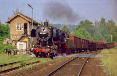An jenem 31.05.2003 fanden auf der Hohenlohebahn Dampfsonderfahrten mit Fotogüterzügen unter dem Motto„Dampfwolken über Hohenlohe“ statt. Dies war vermutlicheine der letzten Gelegenheiten, authentische Dampfzügevor hisorischer Kulisse im Weinsberger Tal zu erleben. War der Ausbau samt Elektrifizierung für die Stadtbahn undModernisierung der Strecke doch bereits beschlossene Sache. Hier beschleunigt 050 988-3 (50 2988 nach altem Nummern-Schema) ihren Fotogüterzug aus dem Bahnhof Weinsbergin Richtung Öhringen vorbei am Wärterstellwerk.Foto: Steffen Schott
