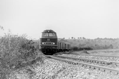 Die Ulmer 215 001-9 ist hier am 04.10.1975 zwischen dem