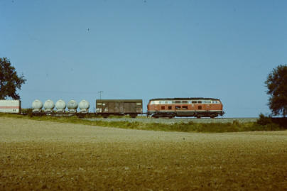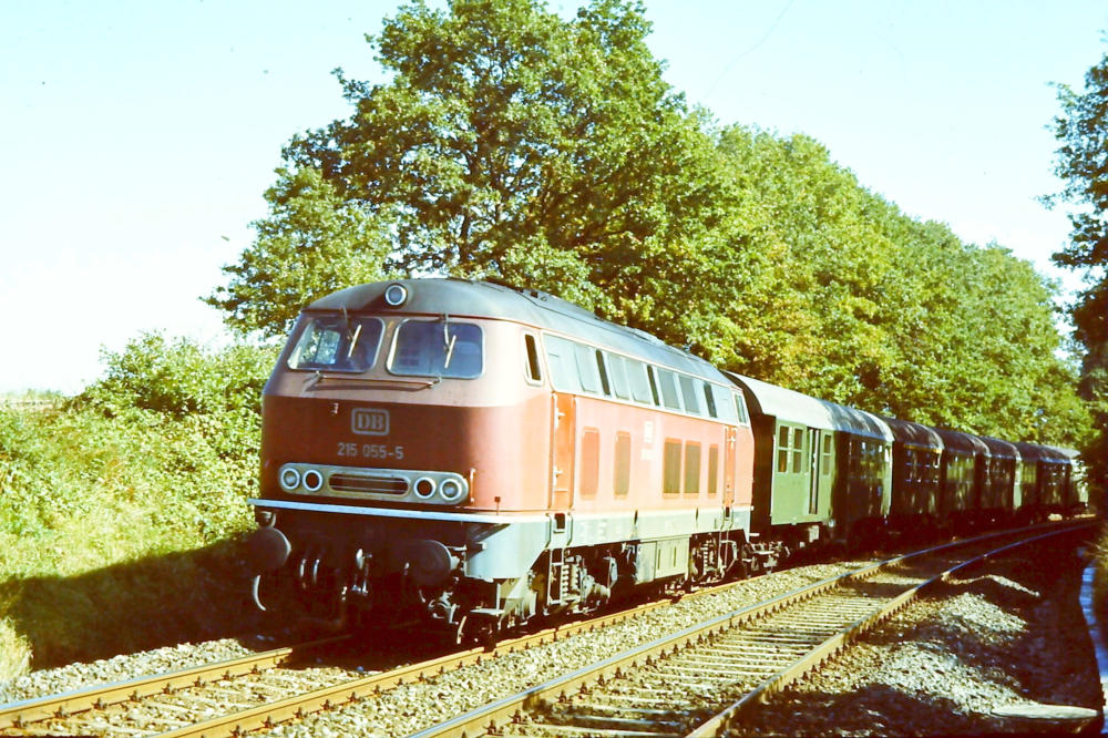 aber er funktioniert noch! 215 136-3 ist mit einem Güterzug