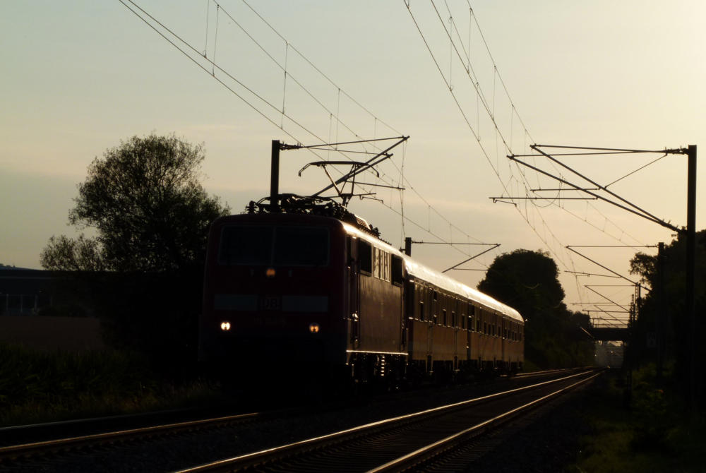 Nun fährt 111 156-5 mit drei Wagen im