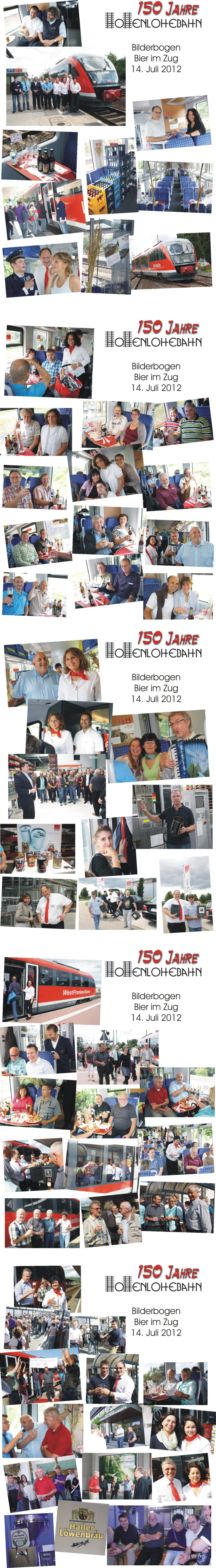 Am 14.07.2012 fuhr ein Eventzug unter dem Motto „Bier im Zug“ als vierter und letzter Zug der vierteiligen Eventzug-reihe im Rahmen der Feiern zu „150 Jahre Hohenlohebahn“ von Schwäbisch Hall nach Heilbronn und zurück.Während der Fahrt wurde nicht nur Bier verkostet, in Öhringen wurde auch die Bierfassfertigung der Firma Huber(5l-Partyfässer) besichtigt. Anschließend ging die Fahrt weiter nach Heilbronn und anschließend zurücknach Schwäbisch Hall.Dort stand dann eine Besichtigung der Haller Löwenbrauerei auf dem Programm.