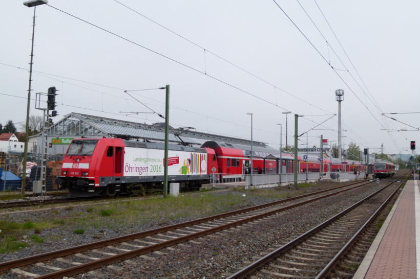 Am 26. September 2015 startete der Vorverkauf für die Dauerkarten der Landesgartenschau in Öhringen. Aus diesem Anlass wurde von der DB Regio AG eine Personenzuglokomotive der BR 146.2 nach Öhringen gebracht und dort der Öffentlichkeit präsentiert. Die Lokomotive war auf beiden Seitenflächen mit einer Werbung für die Landesgartenschau 2016 in Öhringen beklebt, mit welcher im ganzen Land für das Großereignis in Öhringen aufmerksam mgemacht wurde. Hintergrund war eine Wette zwischen DB Regio und der Stadt Öhringen. Wenn Öhringenes nicht geschafft hätte, dann hätte Oberbürgermeister Thilo Michler einen Tag als Zugbegleiter aushelfen müssen.Aber natürlich schafften es die Öhringer, diese Wette zu gewinnen.Worum ging es? Es sollten sich mindestens 150 Öhringer auf dem Bahnhof versammeln und das „Flöhri-Lied“ derHohenloher Kultbband Annâweech zu singen. Klar war es ein Leichtes für die Öhringer, diese Wette zu gewinnen.